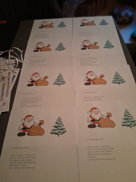 Hier hat unser Verein einige Wunschzettel selber übernommen, einen Brief vom Christkind beigelegt und einen Gutschein gekauft. Das war sehr bedauerlich. Nicht, dass der Verein das übernommen hat, sondern Gutschein generell.