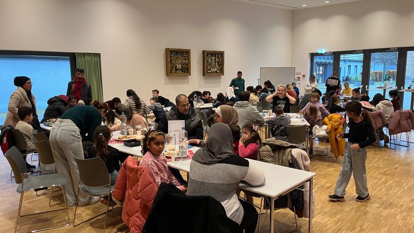 Frühstücker aus 6 Nationen - gemeinsam im großen Saal vom Pfarrzentrum ! Auch hier noch einmal einen großen Dank, dass wir die Räumlichkeiten nutzen dürfen.
